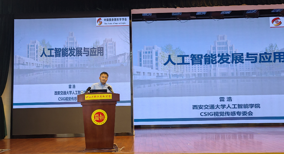 作为本次全国科技活动周的系列活动,CSIG视觉传感专委会于2025年5月29日在陕西省西安爱知中学举办了一场聚焦人工智能与教育融合的科普讲座。活动面向初一、初二全体教师,旨在通过系统性解读人工智能技术发展脉络,推动教师在教学实践中融入AI思维。主讲专家为CSIG视觉传感专委会秘书长雷浩博士,他围绕“人工智能发展与应用”主题,从技术演进、发展与创新、应用场景、未来挑战四个方面深度剖析,为教师在教学设计、课堂实施,以及课后反思中融入人工智能理念提供了实用性很强的指导。